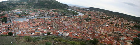Desde las almenas del castillo la vista sobre la ciudad de Bosa es asombrosa. Los colores de las fachadas de las casas se distinguen perfectamente y forman un mosaico muy fotogénico. También desde aquí podemos distinguir a lo lejos, cruzando el rio Temo la Iglesia de San Prieto, antigua catedral fundada en el 1073, y que distingue rasgos del prerrománico sardo.
