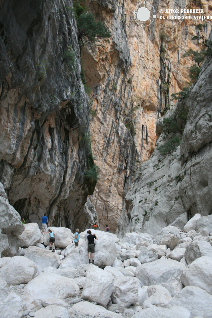 El personal que gestiona la conservación de Gorropu nos informará de las tres partes en las que han subdividido la visita, según el tipo de dificultad, con una parte señalizada como verde y sin mucha dificultad, una amarilla algo más complicada, pero apta para los que les encantan subir y saltar, y una roja que viene indicada como sólo recomendada para visitas con guía que llevan equipo, cuerdas y arneses. Lo cierto es que el sentido común es lo que marca hasta donde puede llegar cada uno. La excursión se puede hacer con niños pero se entiende que son niños acostumbrados a la montaña.